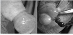(2) severe case: needle puncture, constricted ring 완화를 위해 음경포피에 작은 절개 (Dorsal slit)